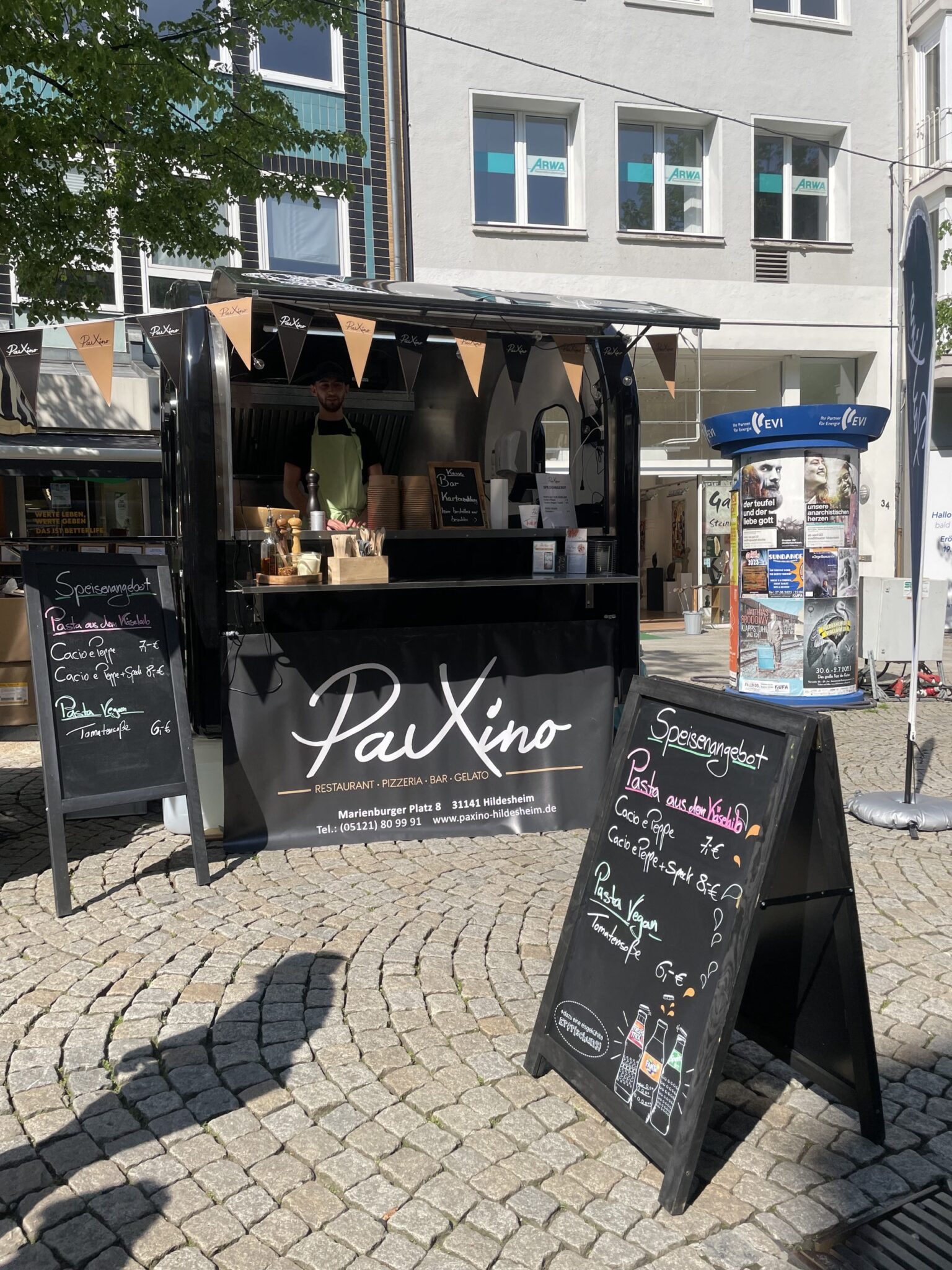 Multifunktional einsetzbar, als Kaffeemobil, als Waffelmobil, als Pastamobil für Großveranstaltungen oder Firmenfeiern.